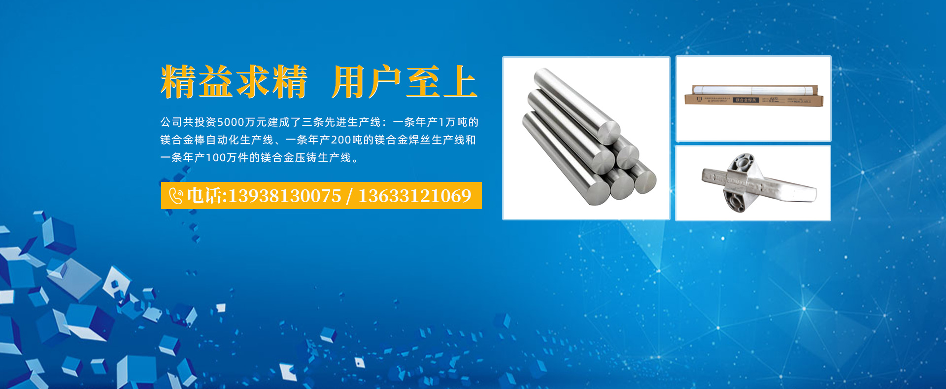河南維可托鎂合金科技有限公司由多年鎂合金從業經驗的劉勝利先生發起。成立于2017年6月,位于焦作市循環產業經濟區,注冊資金1000萬元。2017年,公司共投資5000萬元建成了三條先進生產線:一條年產1萬噸的鎂合金棒自動化生產線、一條年產200噸的鎂合金焊絲生產線和一條年產100萬件的鎂合金壓鑄生產線。  公司目前擁有兩項發明專利——“鎂基合金的半連續鑄造工藝”和“一種鎂合金焊絲的制備方法”。.........了解更多>>